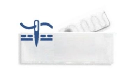 To be stitched into the hem of a textile. Stitch the laundry tag away from the folding lines.